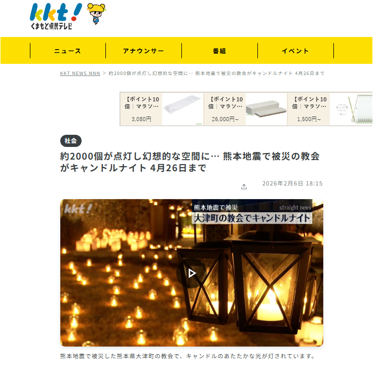 熊本県民テレビに森の教会キャンドルナイトを取材していただきました!